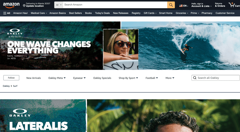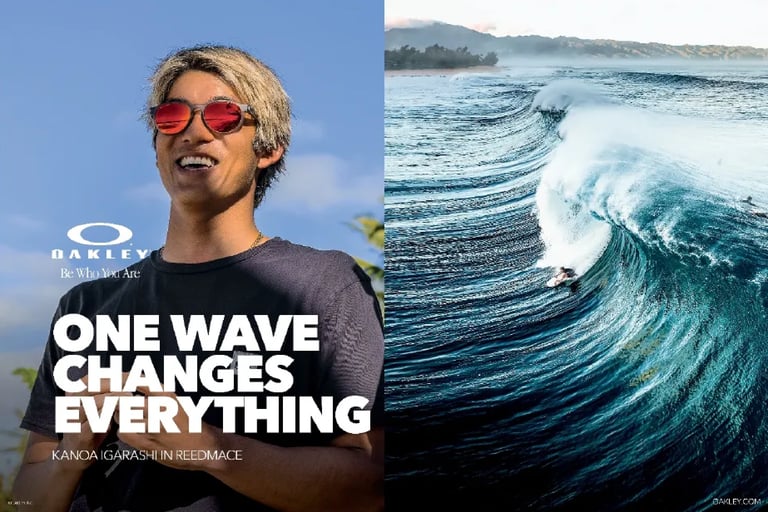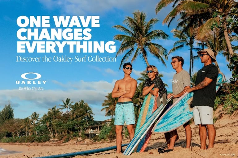 One Idea to get Oakley Surfing in (and on) surfers' heads. Featured across the whole ecosystem: POS, brand page, social pages, print, and very likely in the mouths of real humans.
